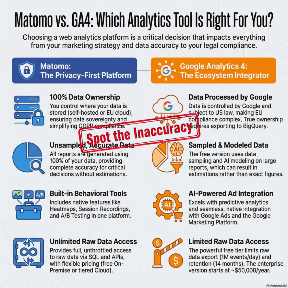 Recently, I generated a short podcast on a topic I’m already familiar with-a comparison between Matomo and GA4. I listened to it while hanging laundry (yes, inside on a rack in the living room; I don’t like putting my shirts in the dryer).